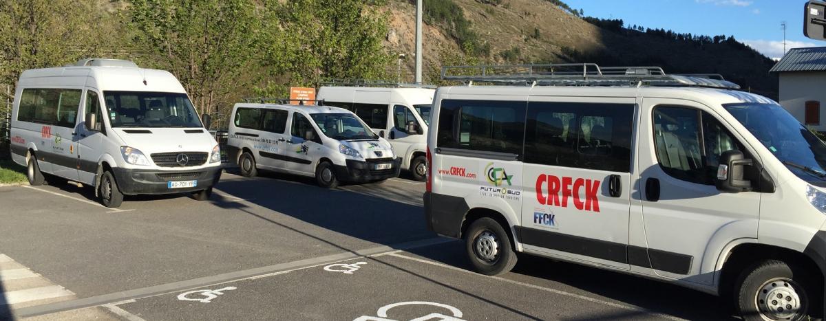Le CRFCK dispose d’un parc de véhicules composé à ce jour de 5 mini bus 9 places. Ainsi que 5 remorques « kayak », une remorque « raft » et une remorque « VTT ».