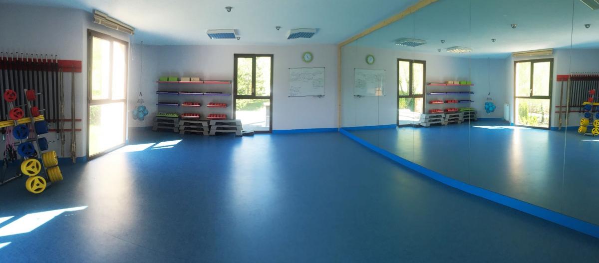 L’espace "Forme" où sont dispensés les cours de remise en forme, stretching, danses, fitness, est équipé d’un nombre important de petits accessoires.